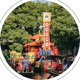 护国随粮王庙会护国随粮王庙初建于明末,清初搬迁至现址。庙内供奉随粮王神像,清中后期庙的香火渐旺,信奉者多为嘉善县西塘镇居民及附近农民。到清末民国初时,庙会规模最大,抗日战争前规模最大的一年参与人数达两三千,是附近数十里内最有名的庙会。随粮王庙会是护国随粮王生日庆典,地点在西塘镇塔湾,庙占地约十亩,坐北朝南,门前是杨秀泾河,河面宽阔,通往全镇各地。河对岸是社戏台,庆典时有演员登台演戏,娱神娱人。庙宇的西、北、东都是民居。随粮王庙会定于每年的农历四月初三(即随粮王生日)举行。庙会分出会和座会两种,“出会”就是将随粮王神像抬出来行街,其队伍排行有十三道,有专门的行当分工,途中休息处有十多个,称“社棚”。每到一处,附近民众前来供奉食物和鲜花,做各种艺术表演以娱神。“座会”就是在庙内庆祝,规模虽小但也非常热闹。为祭奠明末放粮救民的随粮王七老爷,信奉者每年农历四月初三举行盛大的,集宗教、文化、商业于一体的赞神、娱神活动。此俗自清代中后期至民国初年形成,沿袭至今。